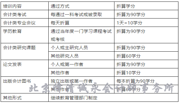 (三)参加国家教育行政主管部门承认的中专以上会计类专业学历(学位)教育,通过当年度一门学习课程考试或考核的,折算为90学分;