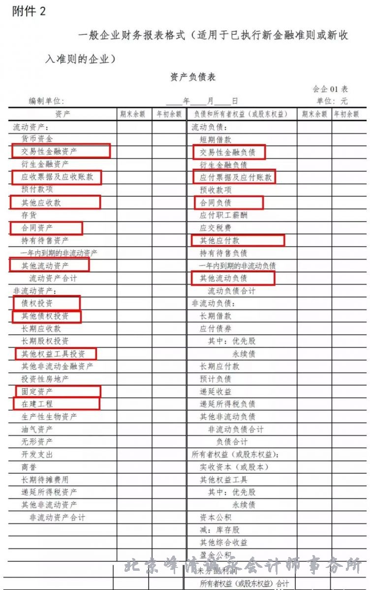 1.新增与新金融工具准则有关的“交易性金融资产”、“债权投资”、“其他债权投资”、“其他权益工具投资”、“其他非流动金融资产”、“交易性金融负债”、“合同资产”和“合同负债”项目。