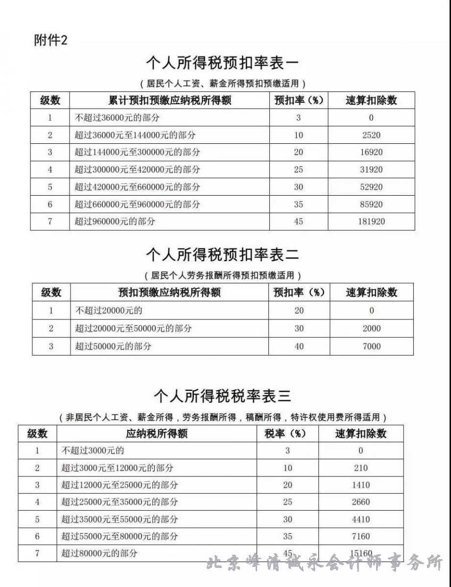 附:最新最全个人所得税税率表及预扣率表