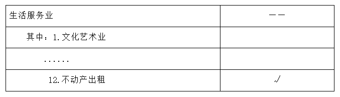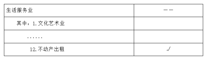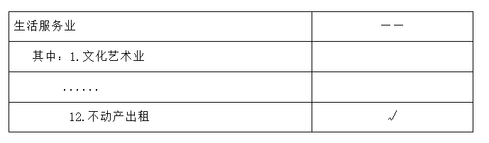 由于四项服务中,AA商贸公司的不动产租赁销售收入占比最高,所以应当在声明中勾选|“不动产租赁”。