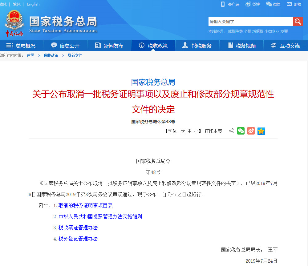 重大利好!国家税务总局发文公布取消25项税务证明事项,其中发票丢失无需登报声明也在本次取消的事项之中。