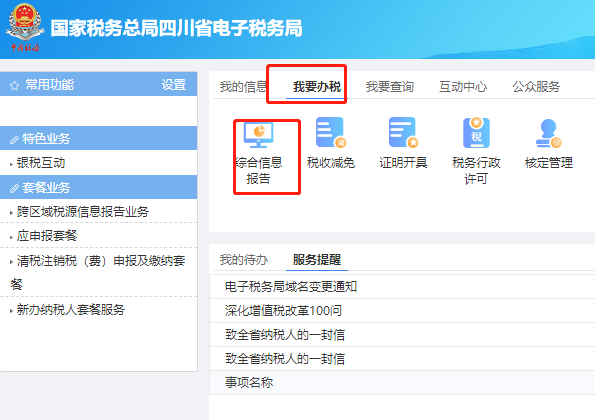 第一步、登录电子税务局,点击我要办税-综合信息