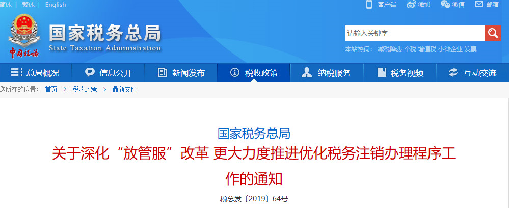 更大力度推进优化税务注销办理程序,是进一步贯彻落实党中央、国务院关于深化“放管服”改革、优化营商环境要求的重要举措。各地税务机关要高度重视,抓好落实,并严格按照法律、行政法规规定的程序和本通知要求办理相关事项。